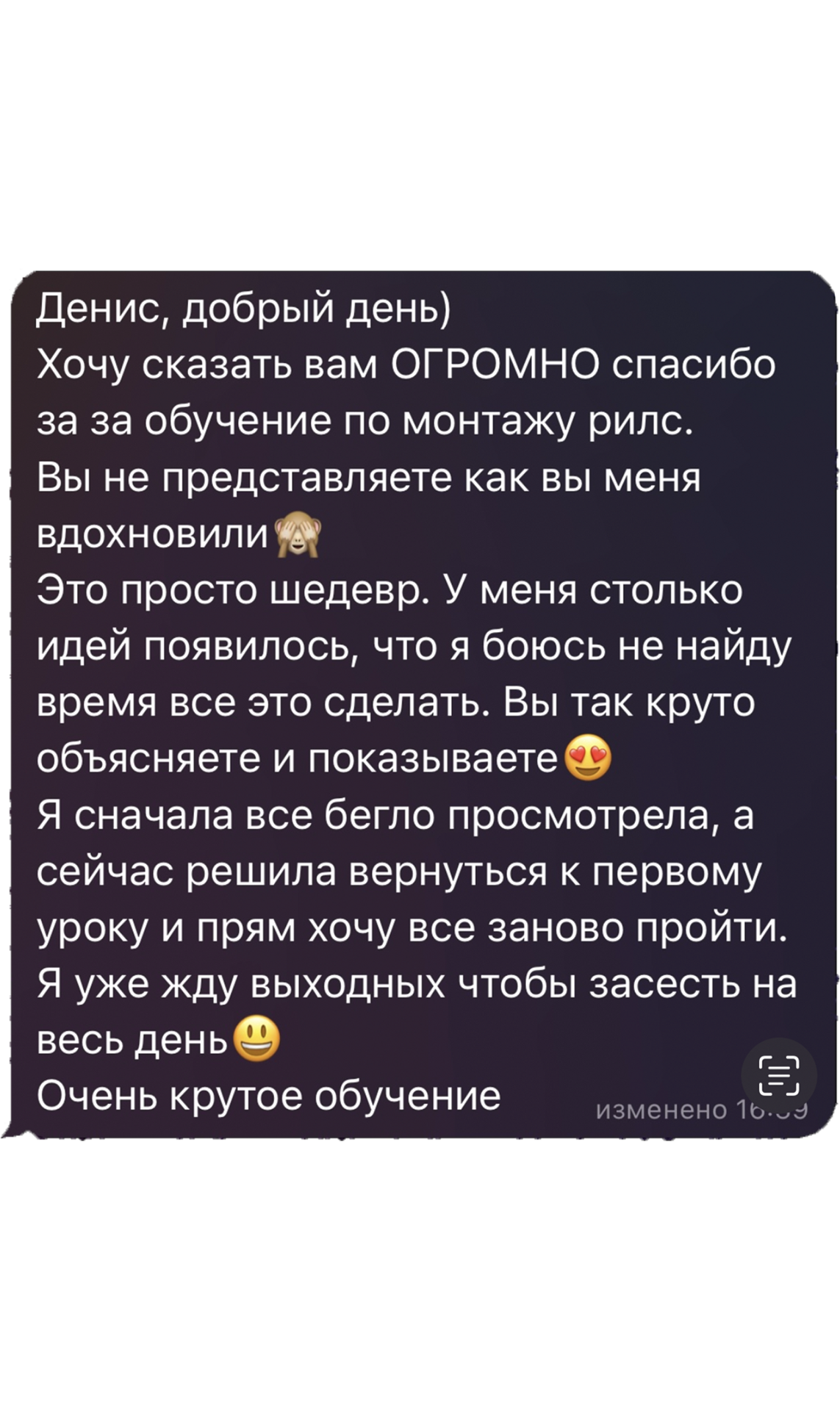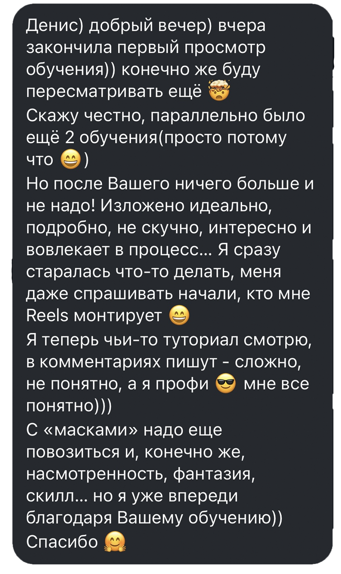 Результат: вы научитесь делать рилсы/шортсы/тт/клипы, которые приносят результаты.